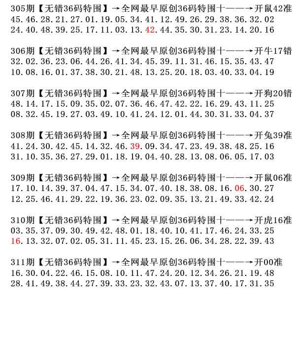 305期:绝杀三肖【牛兔鸡】开:鼠42准